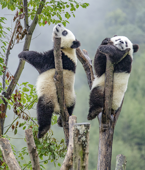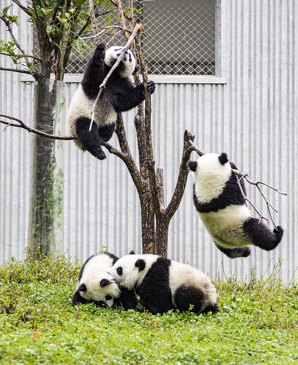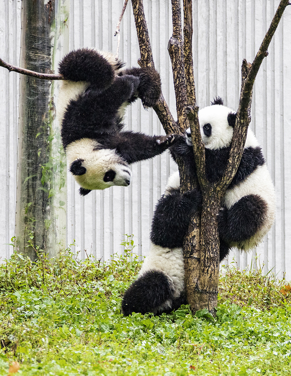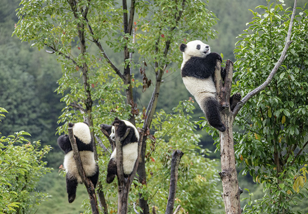 2020年9月12日,四川省阿壩藏族羌族自治州汶川縣耿達鎮(zhèn),中國保護大熊貓研究中心耿達神樹坪基地內(nèi)的大熊貓在玩耍,萌態(tài)十足惹人愛。 劉國興/攝