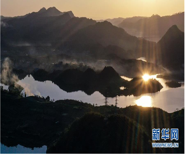 11月10日拍攝的貴陽市阿哈湖國家濕地公園(無人機照片)。 初冬時節(jié),貴州省貴陽市阿哈湖國家濕地公園色彩斑斕,景色怡人。 新華社記者 歐東衢 攝