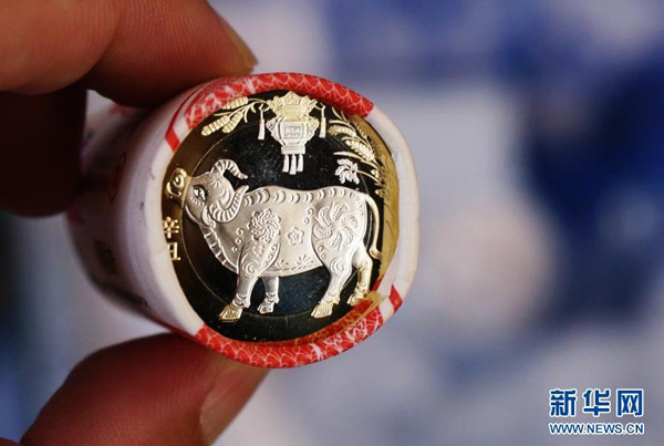賀歲普通紀(jì)念幣開始兌換 紀(jì)念幣背面主景圖案為一頭“抬頭牛”,面額10元,預(yù)約兌換數(shù)量約1.4億枚。