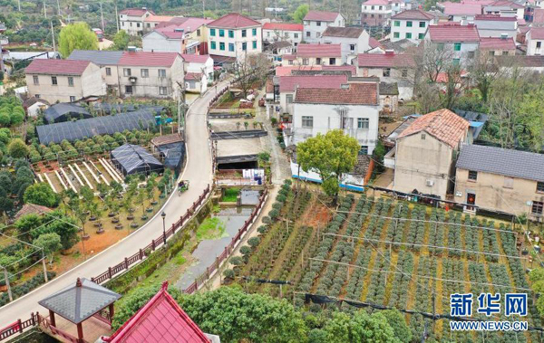 后溪河村村民房前屋后花木環(huán)繞(3月10日攝,無人機(jī)照片)。