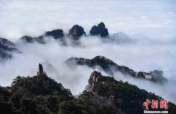 安徽黃山之巔上演云海風(fēng)光大片