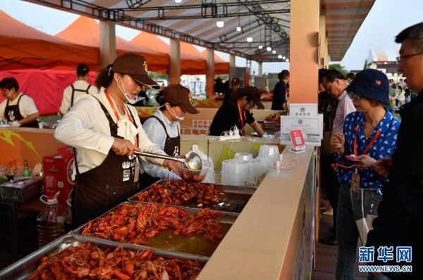 4月29日,游客在品嘗石淙清水小龍蝦。目前石淙鎮(zhèn)共有5000多畝農(nóng)田采用水稻與小龍蝦生態(tài)共養(yǎng)模式。