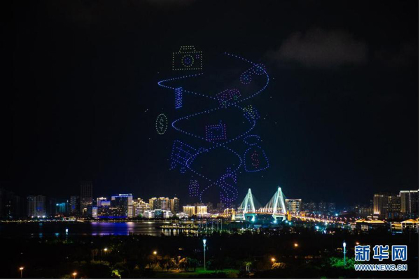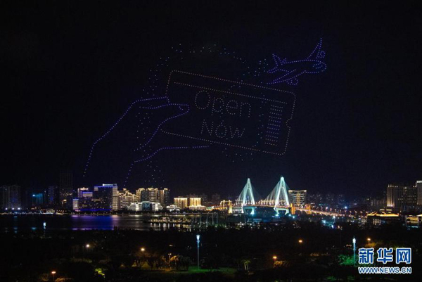 迎接首屆消博會(huì) ??谂e行無人機(jī)表演秀