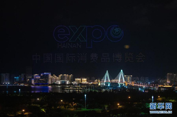 首屆中國(guó)國(guó)際消費(fèi)品博覽會(huì)將于5月7日至10日在位于??诘暮D蠂?guó)際會(huì)展中心舉辦。5月6日晚,??谑猩涎轃o人機(jī)表演秀,迎接首屆消博會(huì)的舉辦。