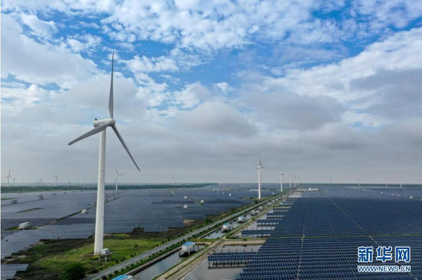 在江蘇省東臺(tái)市沿海灘涂綜合開(kāi)發(fā)示范區(qū),集風(fēng)力發(fā)電、光伏發(fā)電、水面養(yǎng)殖為一體的“風(fēng)光漁”立體開(kāi)發(fā)模式正在形成,實(shí)現(xiàn)灘涂資源的高效利用與生態(tài)開(kāi)發(fā)。