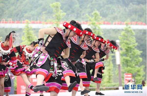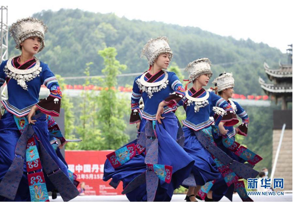 當(dāng)日,貴州省黔東南苗族侗族自治州丹寨縣萬(wàn)達(dá)小鎮(zhèn)在“第二屆中國(guó)丹寨非遺周”中舉辦苗族盛裝巡游、非遺歌舞展演活動(dòng)。