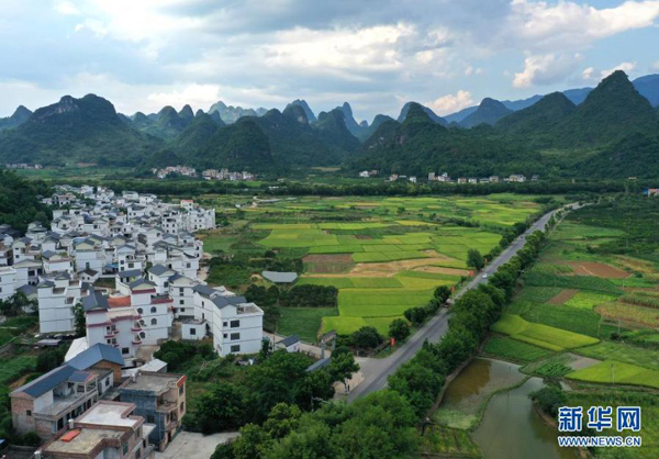 盛夏時節(jié),廣西平樂縣張家鎮(zhèn)田園郁郁蔥蔥,美不勝收(7月14日攝,無人機照片)。