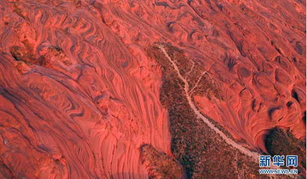 陜西省靖邊縣龍洲鎮(zhèn)波浪谷丹霞景區(qū)地處陜北黃土高原,峽谷四面環(huán)山,線谷、巷谷、絕壁等構(gòu)成了特有的波浪形砂巖地貌,景觀獨特。