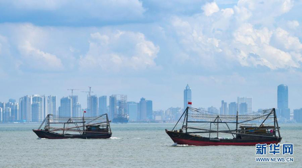 8月16日,漁船陸續(xù)通過(guò)瓊州海峽。