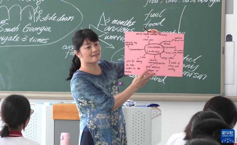 北京市匯文中學教育集團英語教師羅錦虹在給學生上課(資料照片)。新華社發(fā)