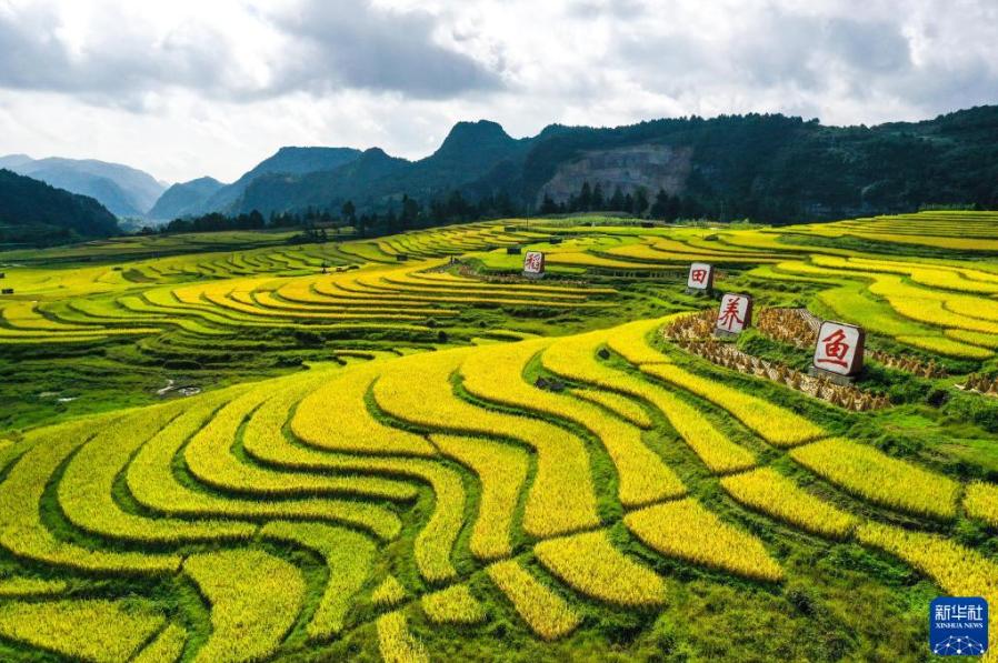 貴州省龍里縣灣灘河鎮(zhèn)羊場(chǎng)社區(qū)的稻田(9月15日攝,無人機(jī)照片)。