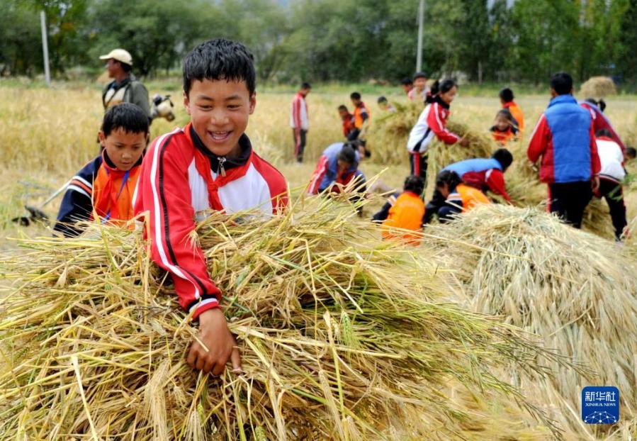 時下正值青稞成熟的季節(jié),西藏日喀則市上海實驗學校40余名師生來到日喀則市甲措雄鄉(xiāng),參與當?shù)氐那囡崭?,?ldquo;思政課”上在青稞地里。學生們在實踐中體會勞動的艱辛,在收獲中感受勞動的快樂。