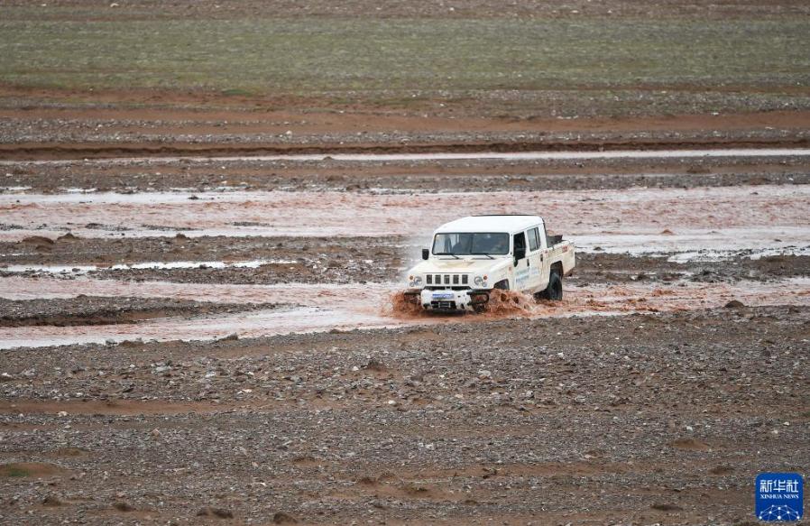 巡山隊員在可可西里地區(qū)駕車巡山(2020年7月8日攝)。