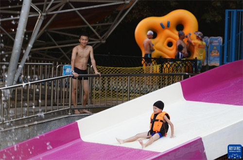 10月2日,游客在長(zhǎng)沙世界之窗水上樂園游玩。