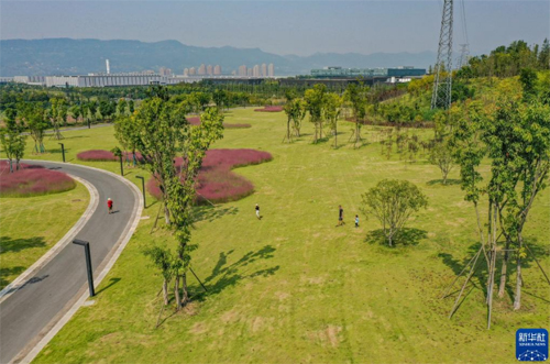 10月2日,人們?cè)谥貞c市兩江新區(qū)粉黛山公園游玩(無人機(jī)照片)。