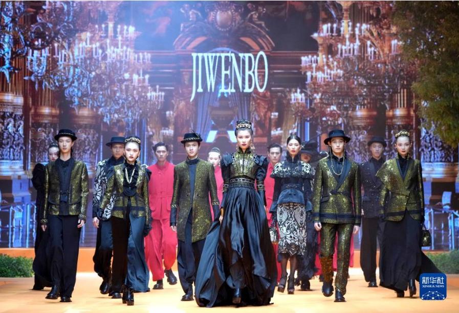 10月18日,模特在展示中國知名設計師、金頂獎獲得者計文波設計的時裝。