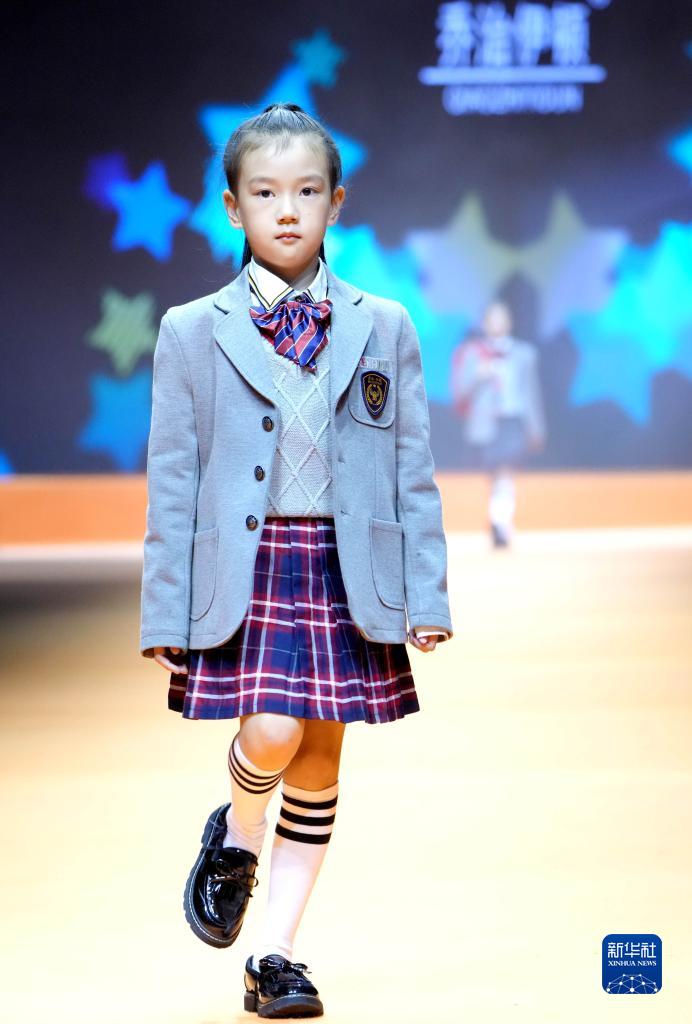 10月18日,小模特在展示重慶當?shù)胤b品牌的校服系列服裝。