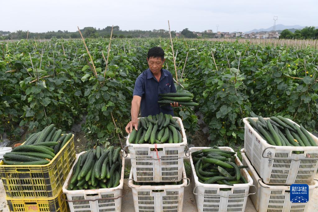 11月4日,在廣西田東縣平馬鎮(zhèn)百林村,村民在采摘黃瓜準(zhǔn)備上市。