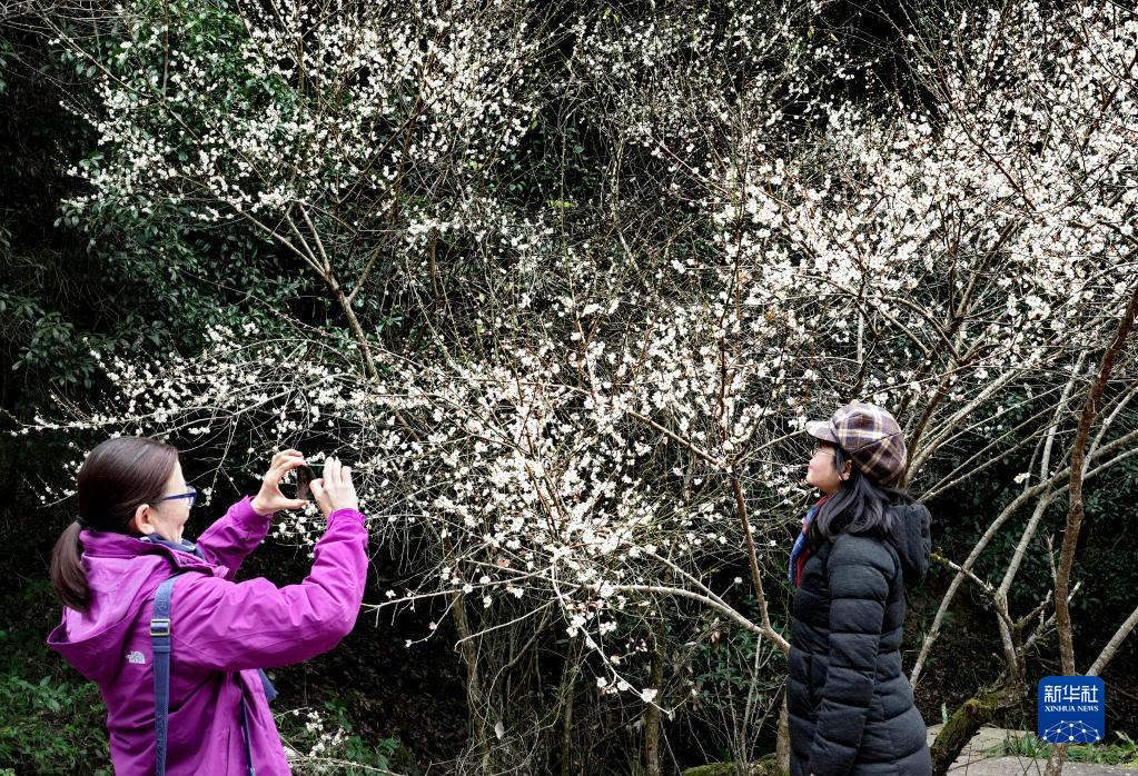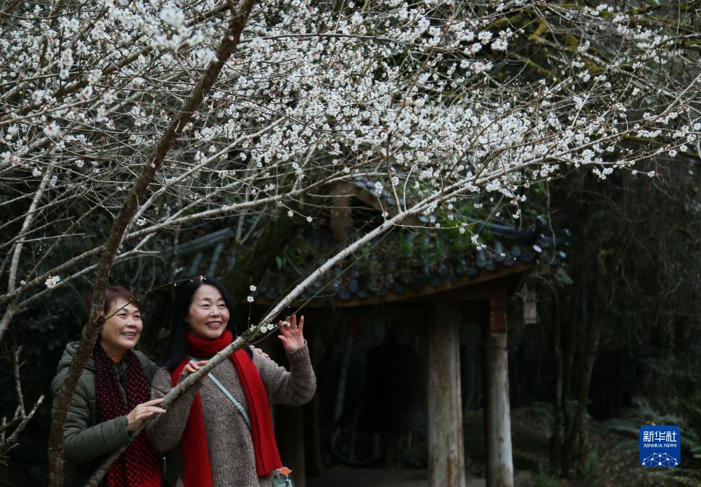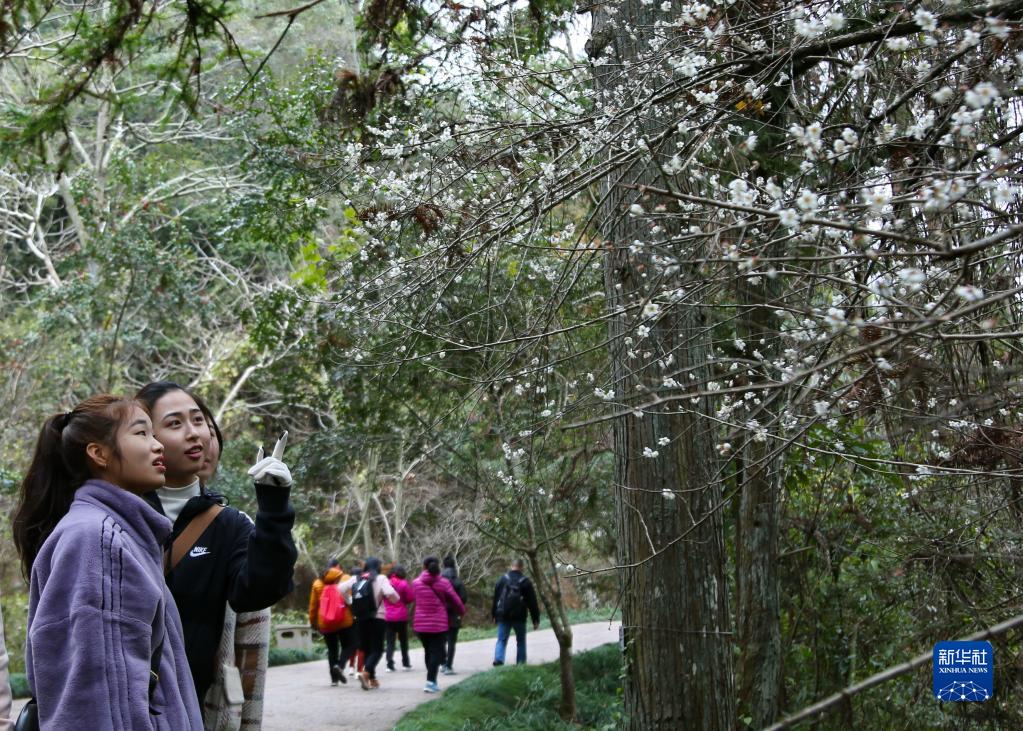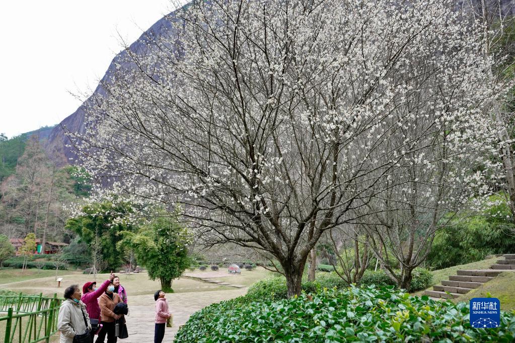 冬日時(shí)節(jié),福建武夷山國家公園內(nèi)的梅花相繼綻放,吸引眾多游人前來觀賞。