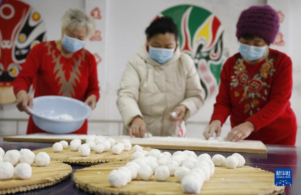 2月14日,在河北省邢臺市襄都區(qū)西大街街道,居民在制作元宵。