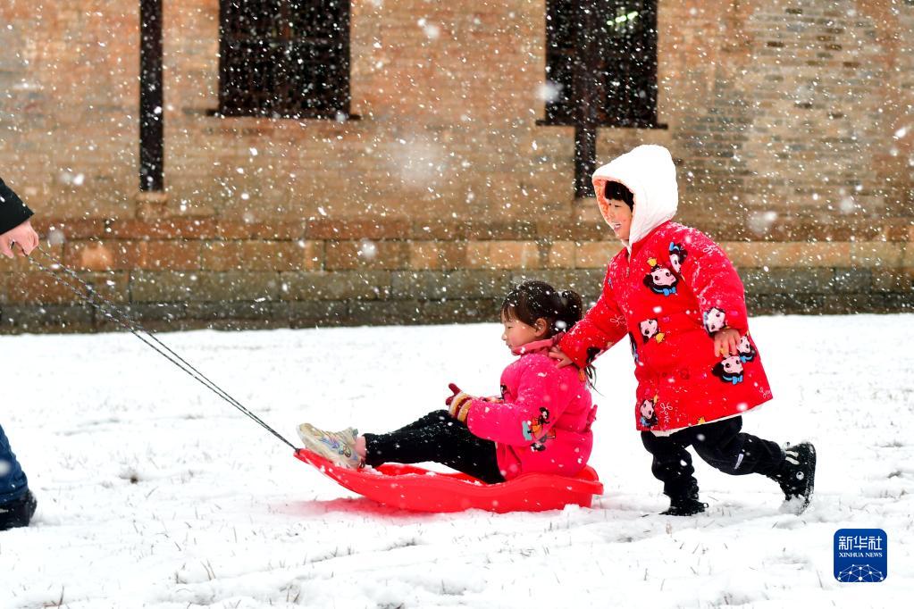 2月22日,在湖南省婁底市雙峰縣荷葉鎮(zhèn),小朋友在雪中玩耍。