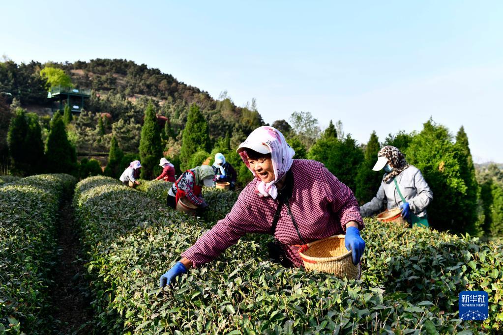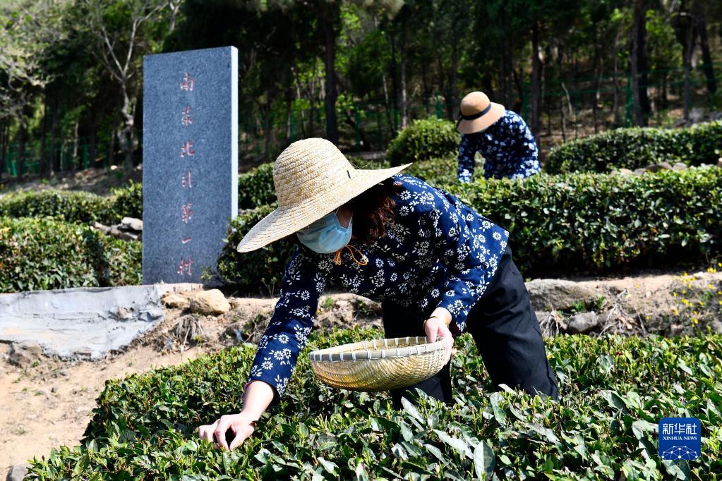 4月21日,在日照市東港區(qū)日照街道茶葉基地,茶農(nóng)在采摘春茶。