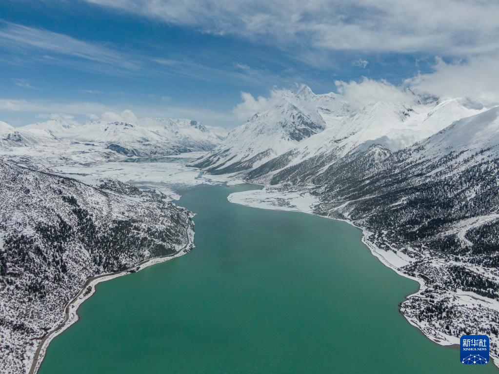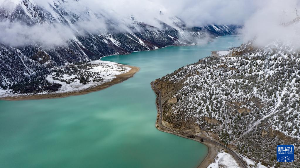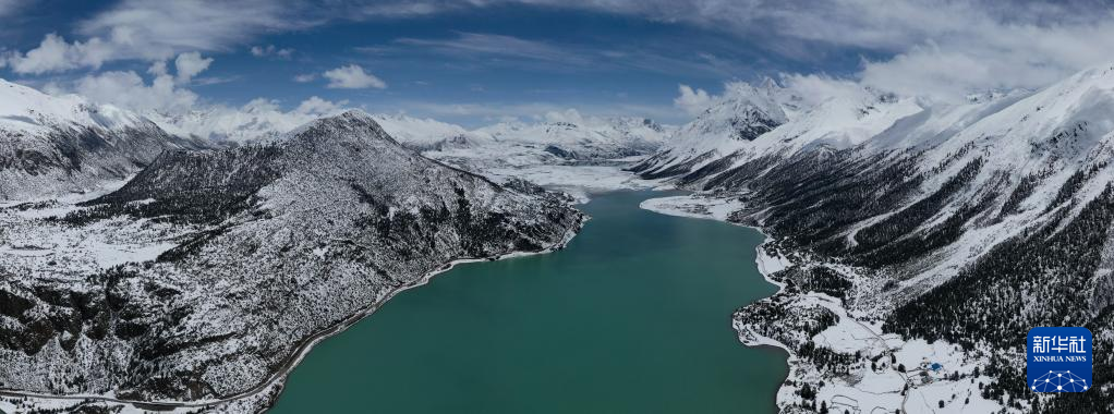 這是無人機(jī)拍攝的然烏湖(4月18日攝)。