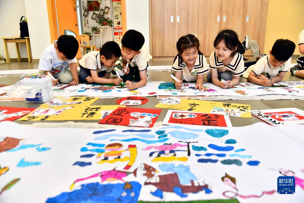 5月30日,在山東省實(shí)驗(yàn)幼兒園,孩子們在手繪《西游記》圖畫。