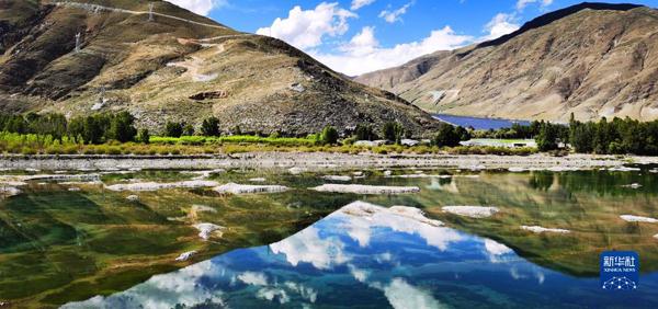 這是拉薩市達(dá)孜區(qū)巴嘎雪濕地(6月26日攝,手機(jī)照片)。夏日的拉薩河谷,藍(lán)天白云、綠水青山,油菜花和麥浪宛如調(diào)色板,構(gòu)成一幅生機(jī)勃勃的高原景致。新華社記者 沈虹冰 攝