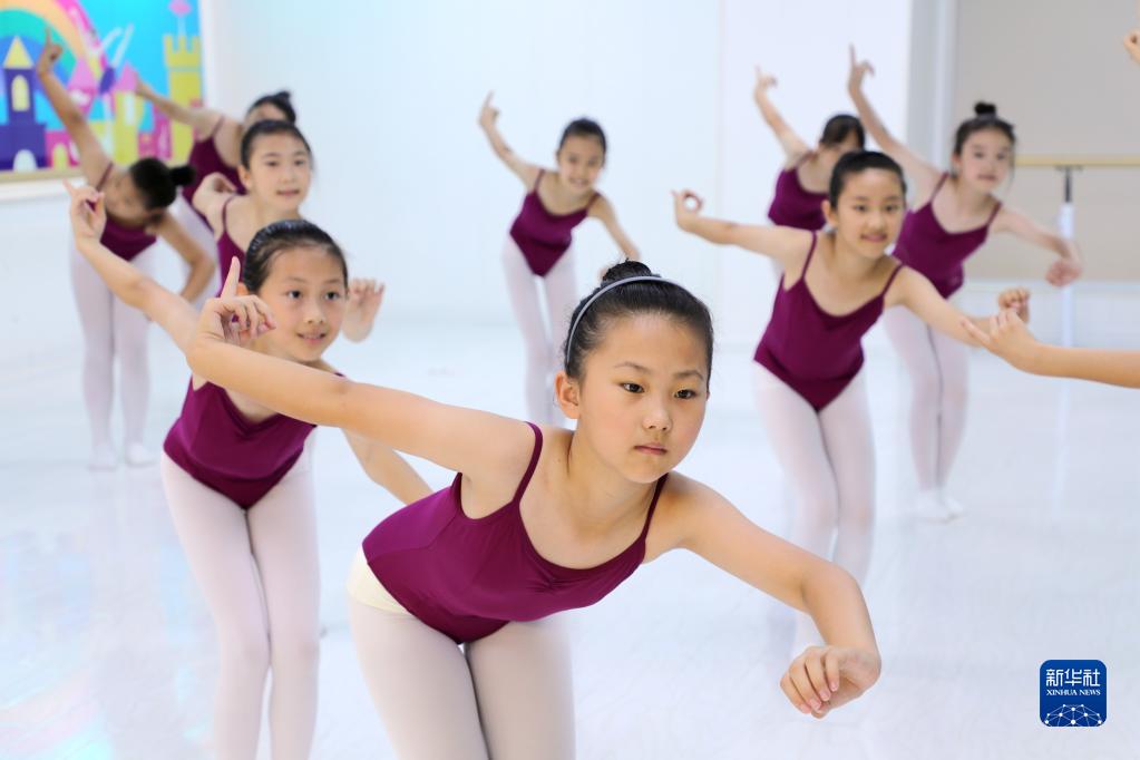 7月12日,山東省東營市東營區(qū)文匯街道一舞蹈培訓(xùn)學(xué)校教室里,學(xué)生在練習(xí)舞蹈動(dòng)作。