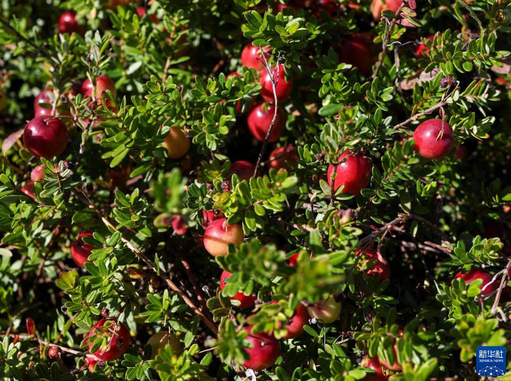 這是9月4日在撫遠市紅海植業(yè)有限公司蔓越莓種植基地內拍攝的成熟的蔓越莓。