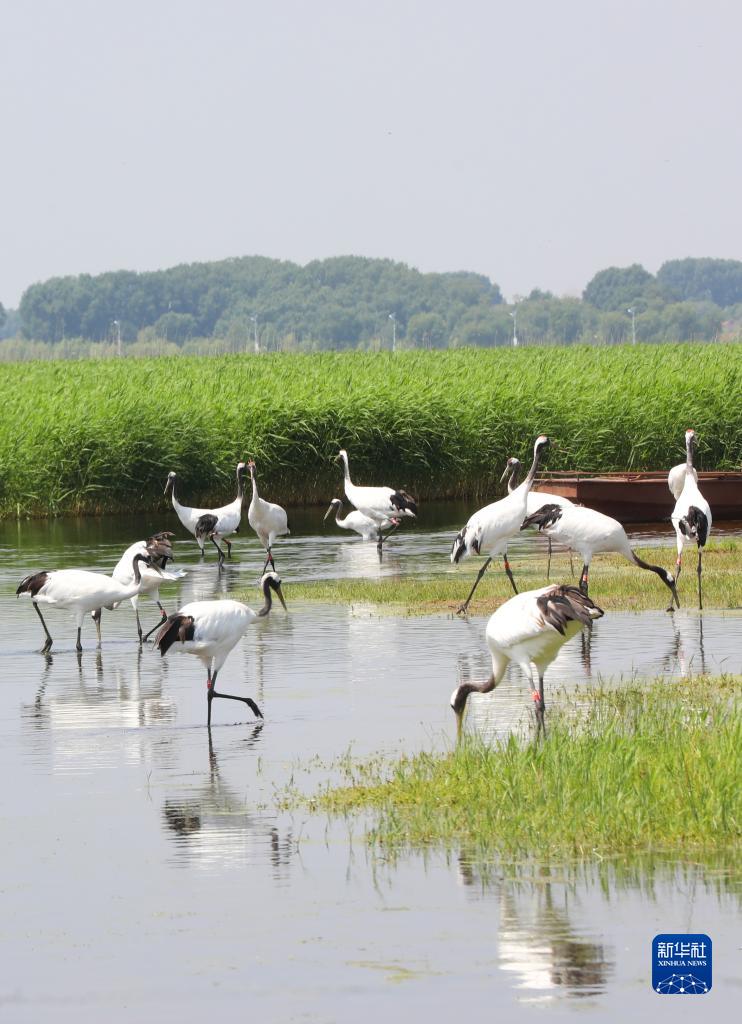 這是黑龍江扎龍國(guó)家級(jí)自然保護(hù)區(qū)的丹頂鶴(2022年6月15日攝)。 新華社發(fā)(宋燕軍 攝)