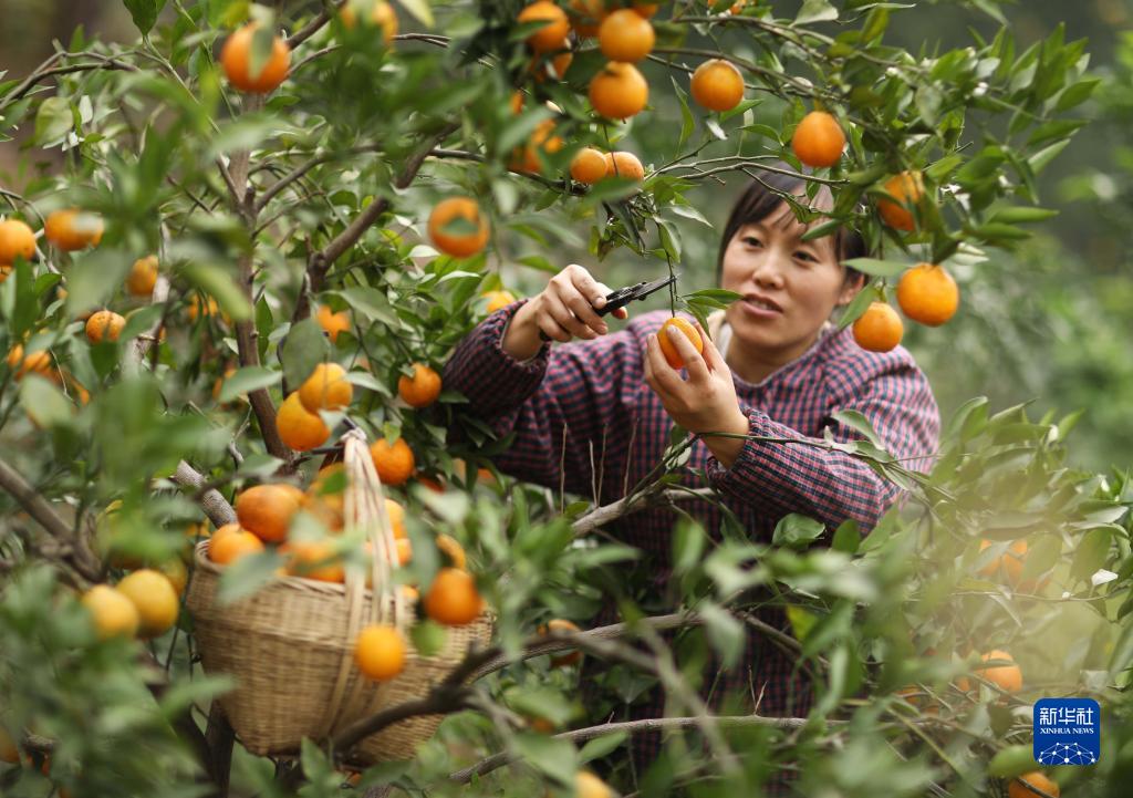 11月7日,貴州省赤水市文華街道雙龍社區(qū)的村民在采摘柑橘。
