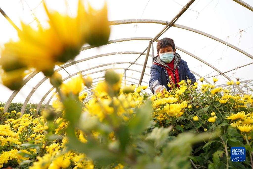 11月7日,河北省邢臺(tái)市內(nèi)丘縣吳村農(nóng)民在采摘金絲皇菊。