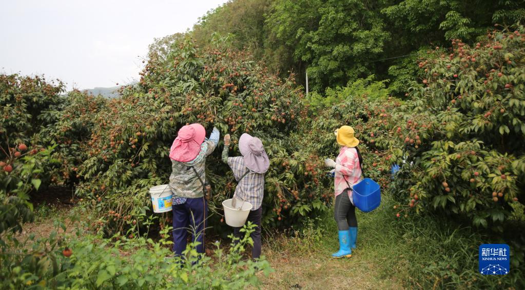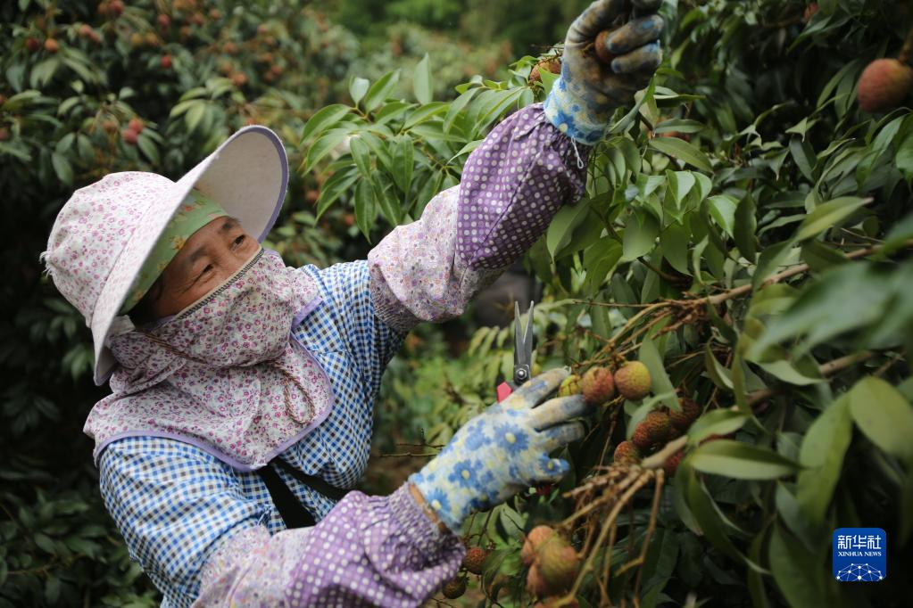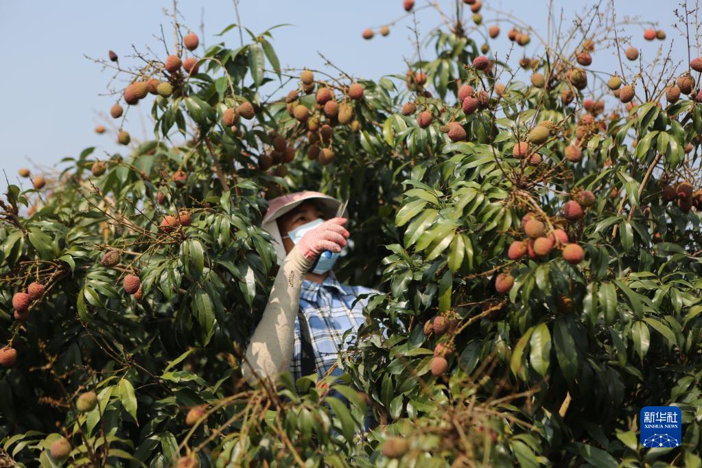 3月12日,農戶在樂東黎族自治縣萬沖鎮(zhèn)友誼村內的荔枝基地采摘荔枝