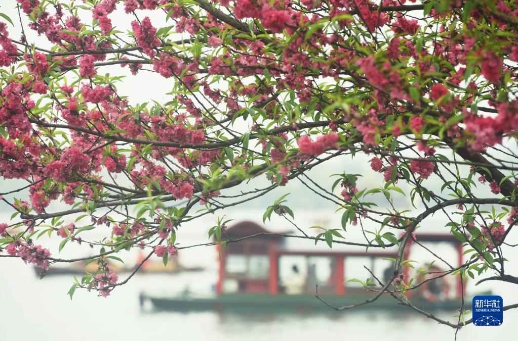 4月5日,游客在江蘇揚州瘦西湖風景區(qū)游玩(無人機照片)。