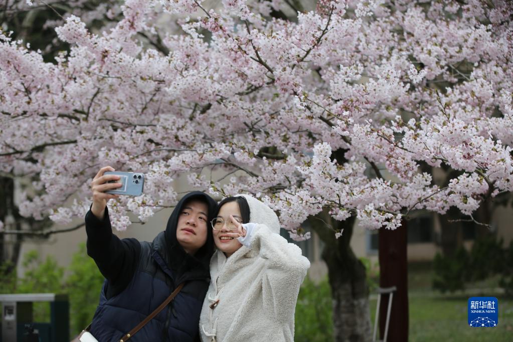 4月5日,人們在北京元大都城垣遺址公園賞花。