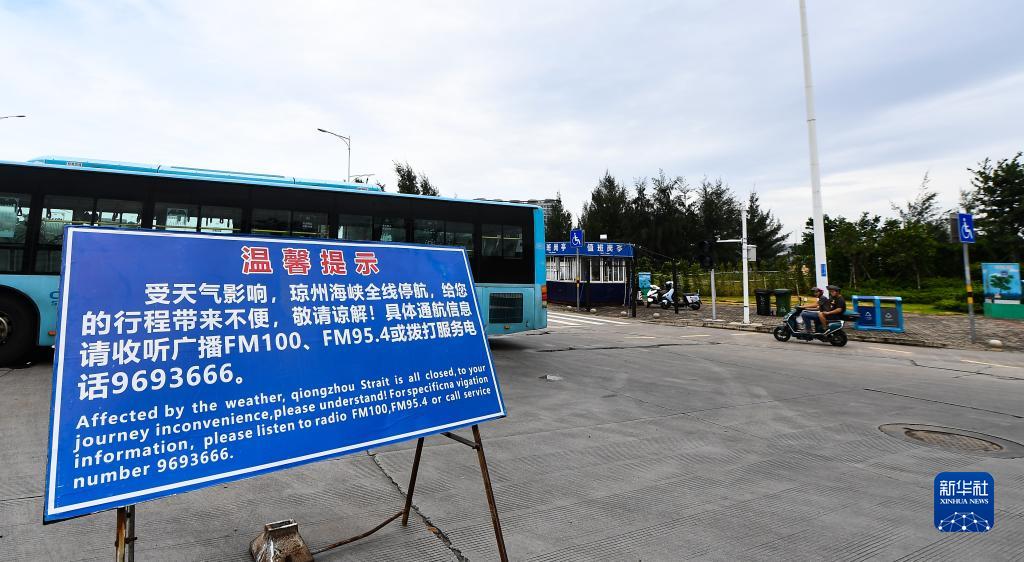 這是海口市新海港外的瓊州海峽停航信息提示牌(7月17日攝)。