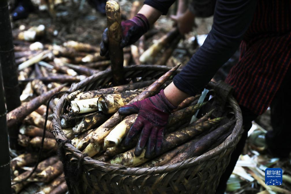 10月8日,在貴州省赤水市寶源鄉(xiāng)聯(lián)華村,農(nóng)民采挖竹筍。