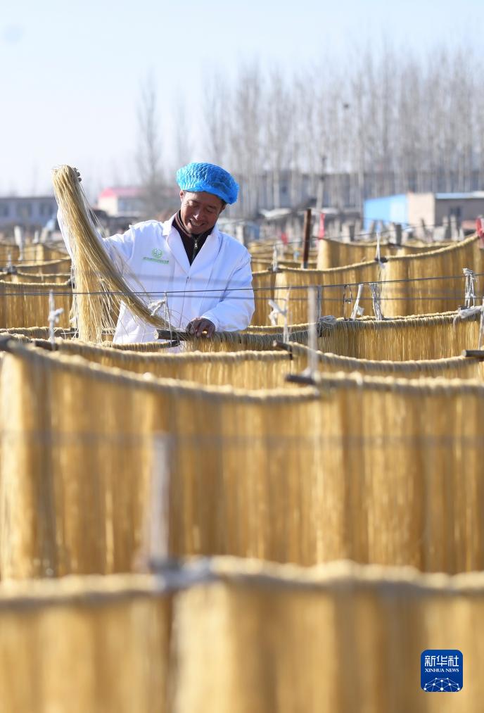 初冬時節(jié),氣溫驟降,正是傳統(tǒng)手工粉條加工的好時節(jié)。在河北省遷安市,農(nóng)民們忙著加工晾曬粉條供應(yīng)市場。近年來,遷安市著力構(gòu)建“一村一品”產(chǎn)業(yè)發(fā)展格局,鼓勵有條件的村莊和農(nóng)戶利用冬閑時節(jié)從事粉條加工產(chǎn)業(yè),不斷開拓省內(nèi)外市場,有效拓寬群眾增收途徑。
