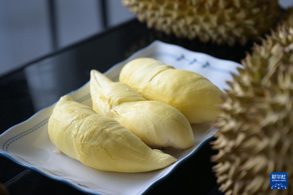 7月20日在海南省三亞市優(yōu)旗大嘴鳥榴蓮園一號基地拍攝的國產(chǎn)榴蓮果肉。
