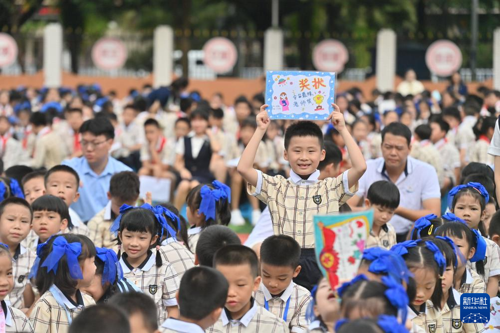 9月10日,南寧市濱湖路小學(xué)的學(xué)生展示送給老師的手繪作品。
