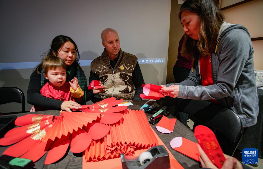 1月18日,人們在加拿大溫哥華舉行的中國春節(jié)文化體驗活動上學習制作春節(jié)裝飾品。