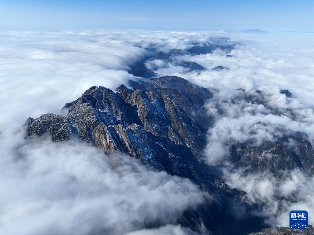 2月18日拍攝的安徽黃山風景區(qū)景色(無人機照片)。