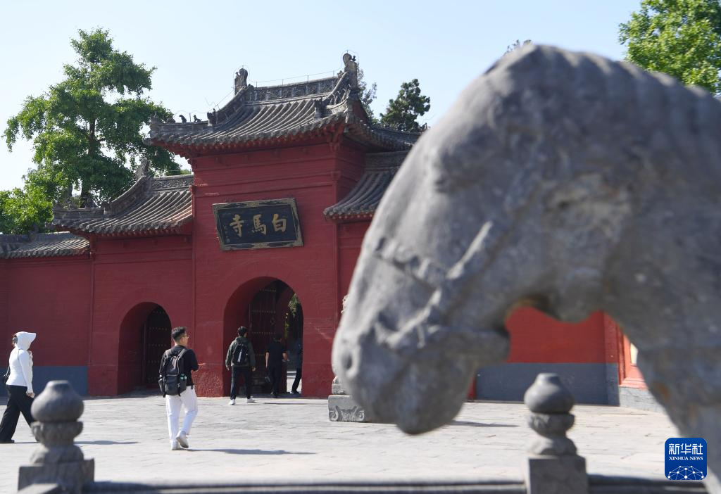 5月19日,游客在白馬寺游玩。