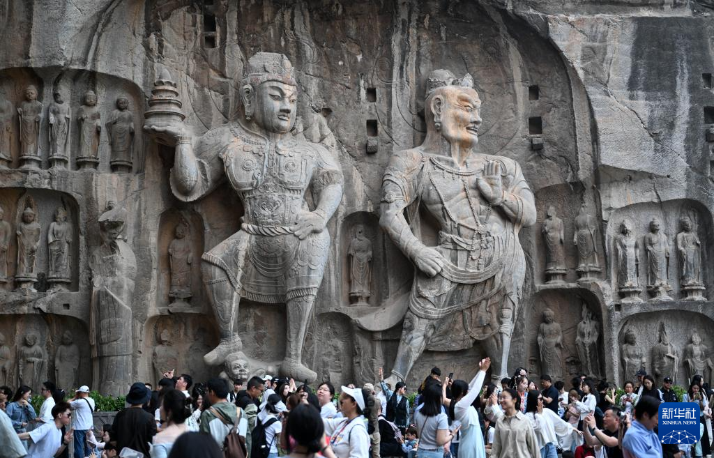4月10日,游客在龍門石窟游玩。