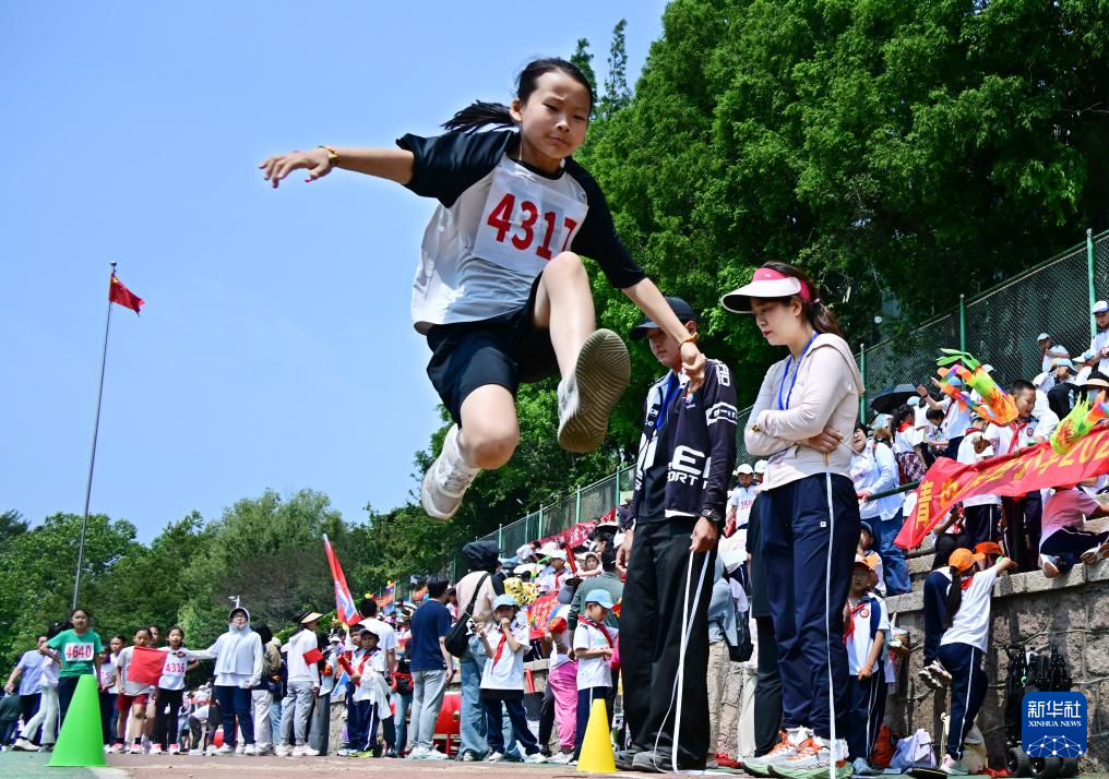 5月30日,青島市實(shí)驗(yàn)小學(xué)學(xué)生參加跳遠(yuǎn)比賽。