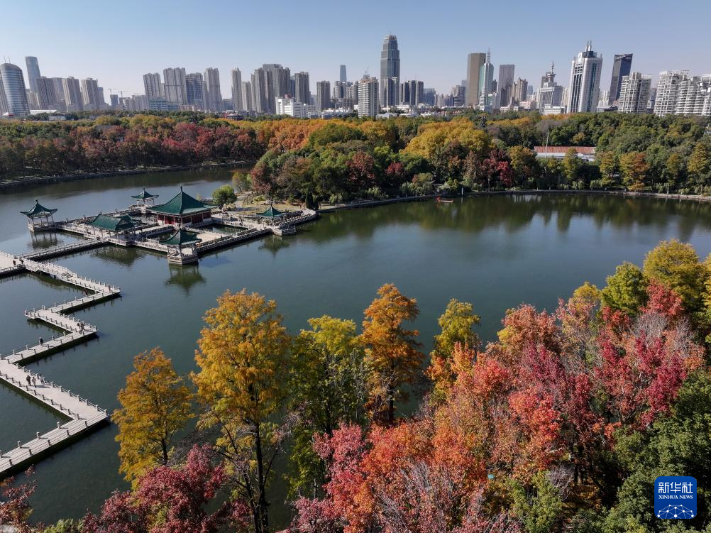11月18日在湖北省武漢市東湖風景區(qū)拍攝的初冬景色(無人機照片)。