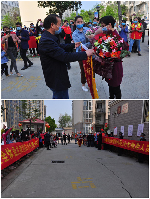 “我的愛都是為你準(zhǔn)備的,我的情都是被你陶醉的,我的心醉醉夢(mèng)醉醉,歌唱你的美……”伴隨著飽含深情的歌聲,小區(qū)居民為援鄂凱旋醫(yī)護(hù)卯姣娜送上了鮮艷的手捧花。4月8日,源匯區(qū)金碧苑小區(qū)的物業(yè)方和業(yè)主共同舉辦歡迎援鄂歸來(lái)的業(yè)主卯姣娜回家儀式,以“最高禮遇”向戰(zhàn)“疫”英雄致敬。